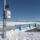 リアルタイムで浸水水位を監視し、地図上に水位情報を表示するサービスです。実際の設置イメージを展示します。