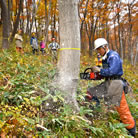 大規模災害時に現地に赴き、支援活動を行った様子や、倒木による被害を未然に防ぐための森林整備事業について紹介します。
